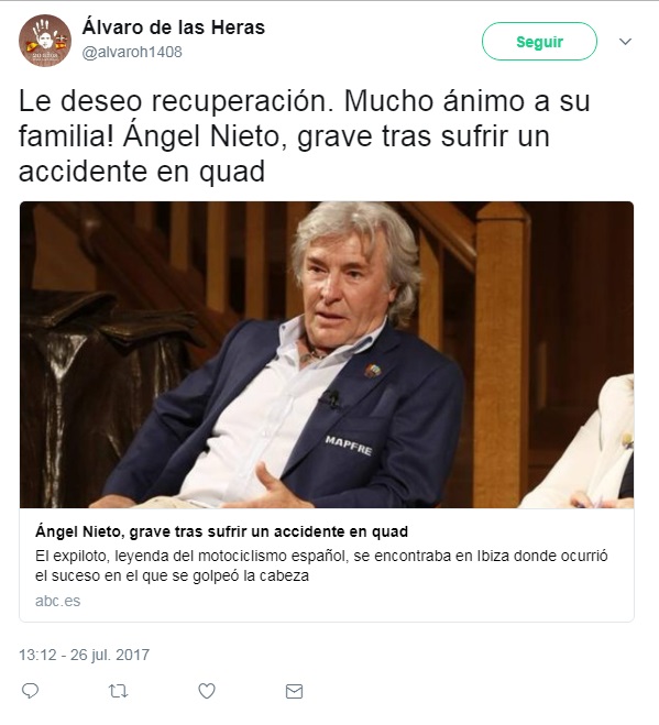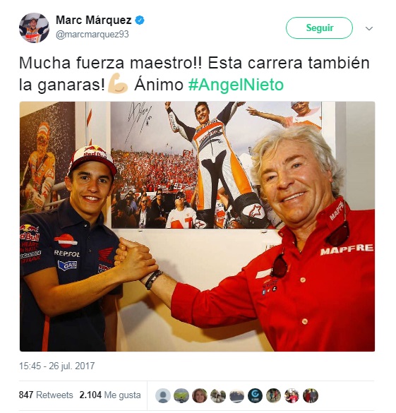 Esperamos que se recupere muy pronto ¡¡Arriba Ángel Nieto!! #AngelNieto