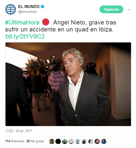Trágico accidente de Ángel Nieto esta mañana en Ibiza cuando iba conduciendo un quad. En este momento se encuentra en la Politécnica de Nuestra Señora del Rosario tras ser operado por la gravedad de su estado.